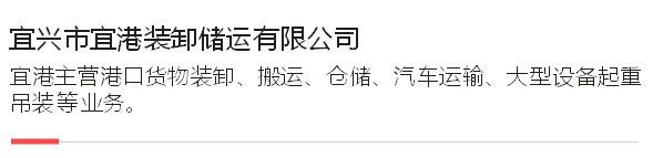 本公司創(chuàng)建于1956年,前身是宜興市港務(wù)管理處宜城港區(qū),2001年實(shí)行公司改制,是宜興地區(qū)具有較強(qiáng)實(shí)力的港口裝卸、起重運(yùn)輸?shù)钠髽I(yè),在市內(nèi)外享有較高的聲譽(yù)。